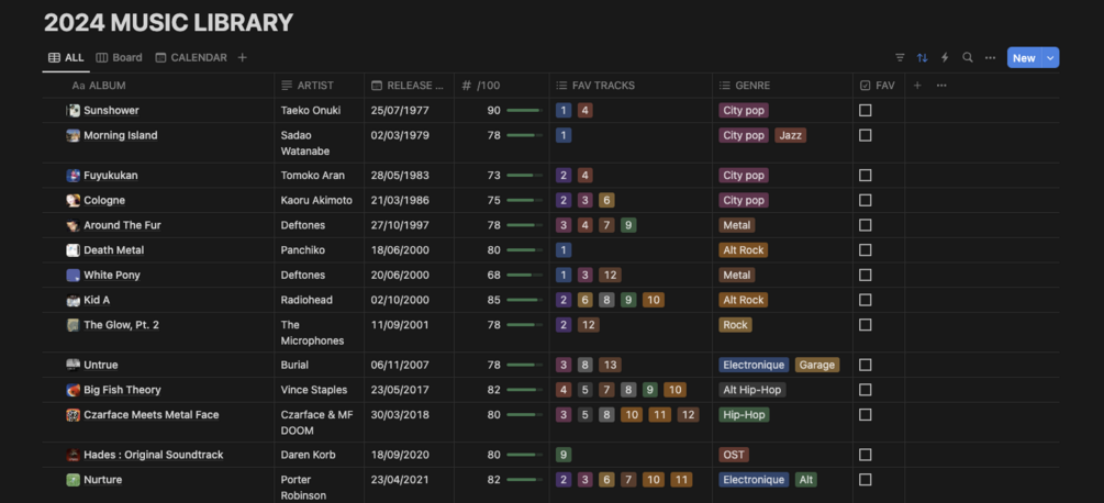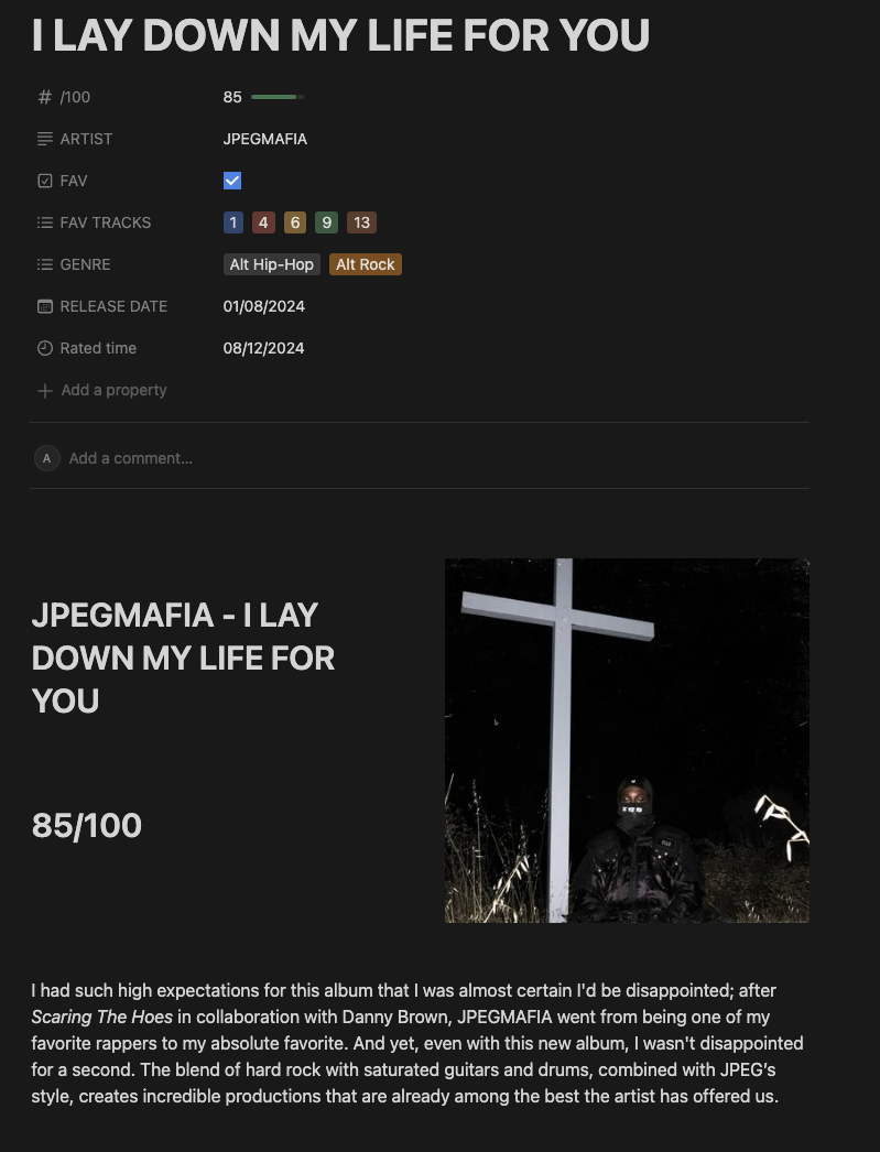 This template is a music rating system designed to archive, rate, and comment on the albums you listen to throughout the year.